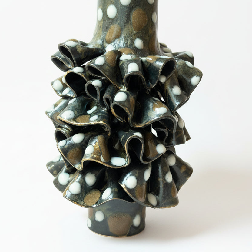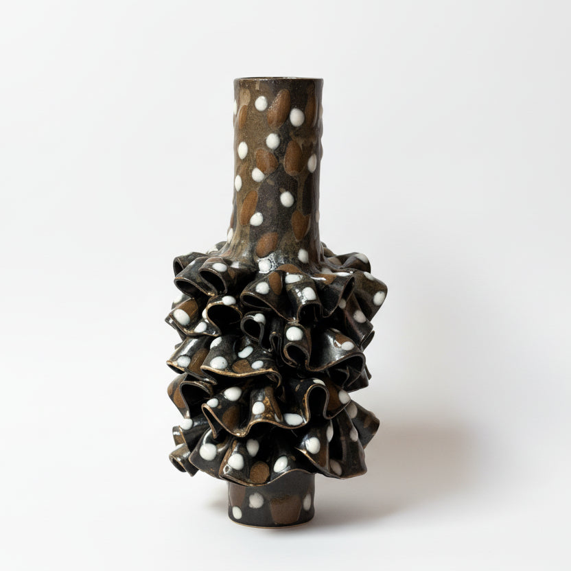 Chloe Park Medium Ruffled Vase in Black with White and Brown