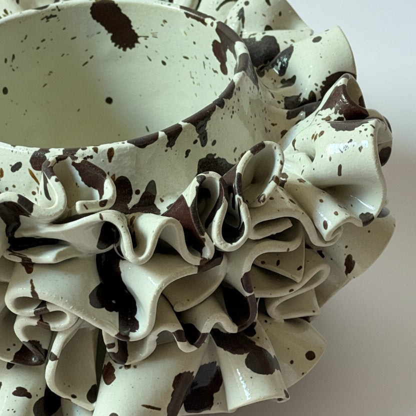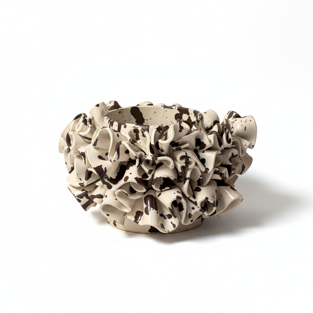 Chloe Park Medium Ruffled Vessel in Cream and Brown
