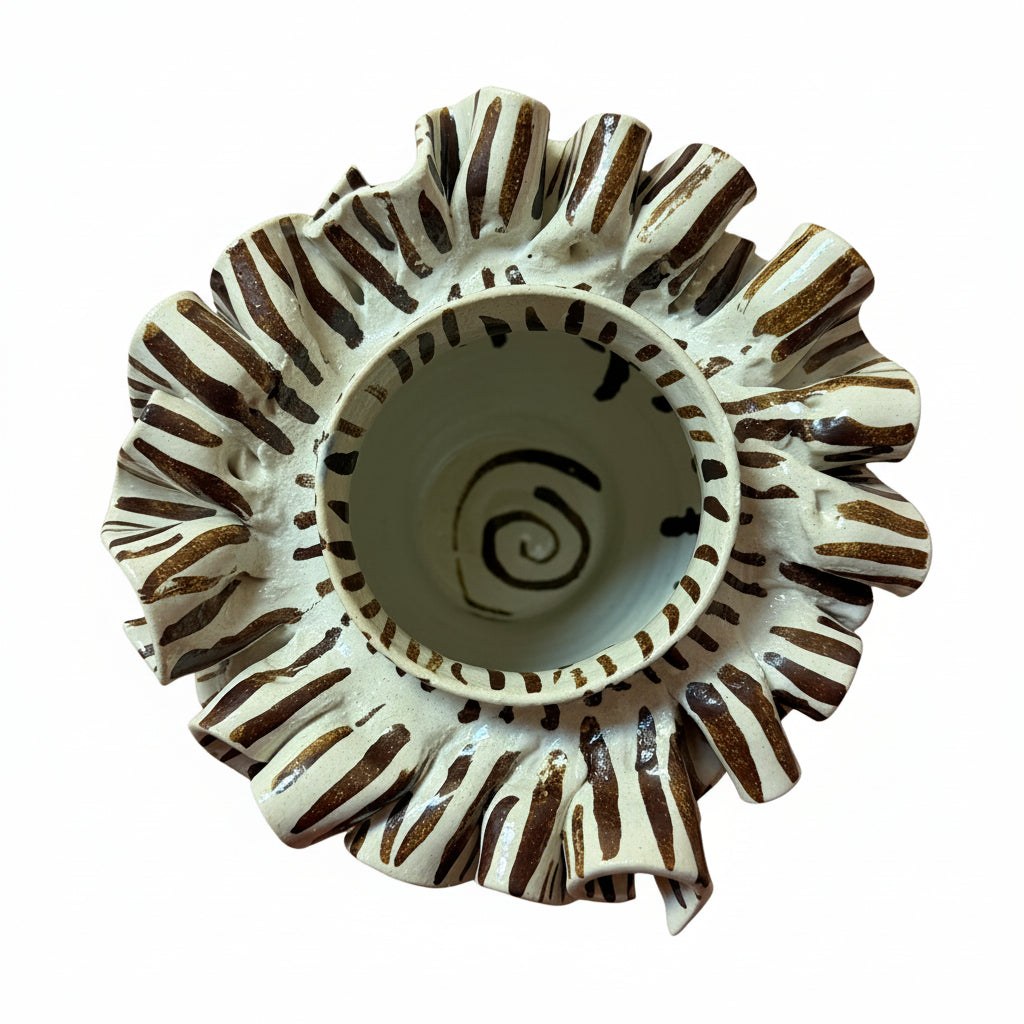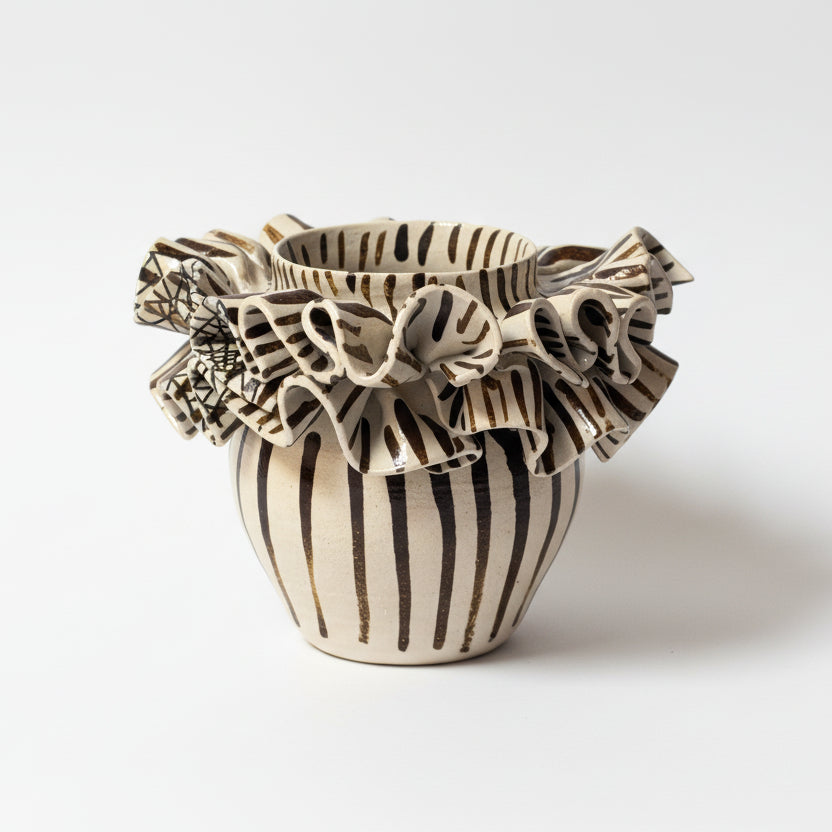 Chloe Park Small Ivory and Brown Striped Ruffled Vase
