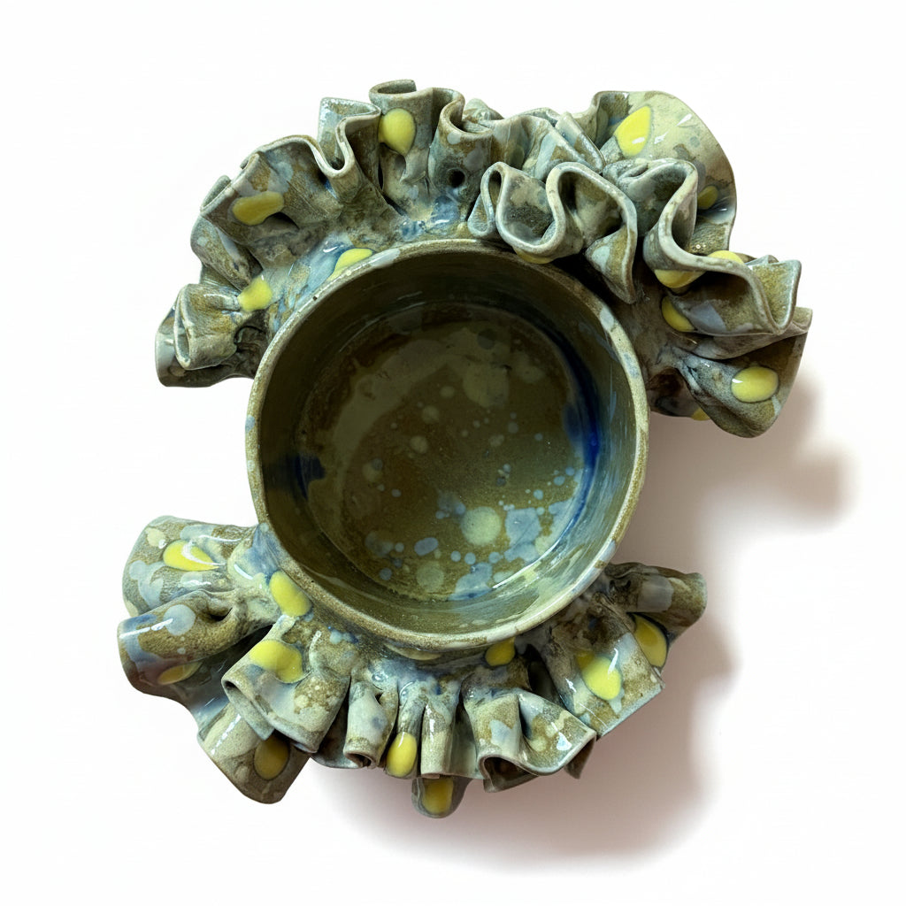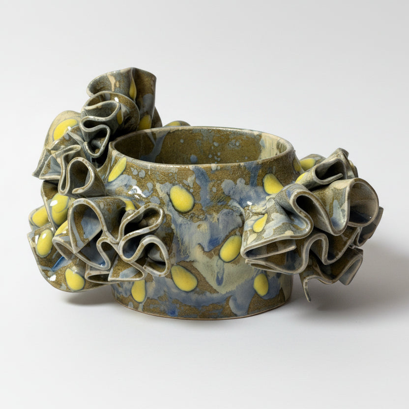 Chloe Park Small Ruffle Vessel in Grey, Blue and Yellow