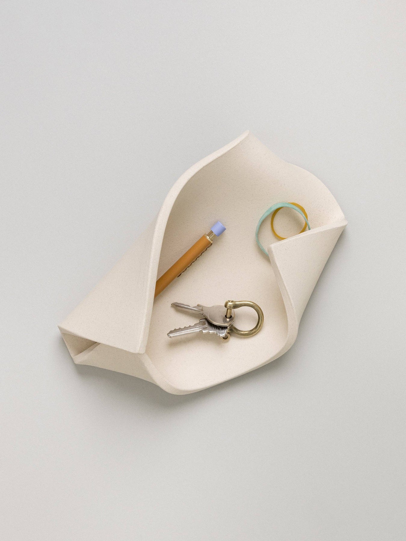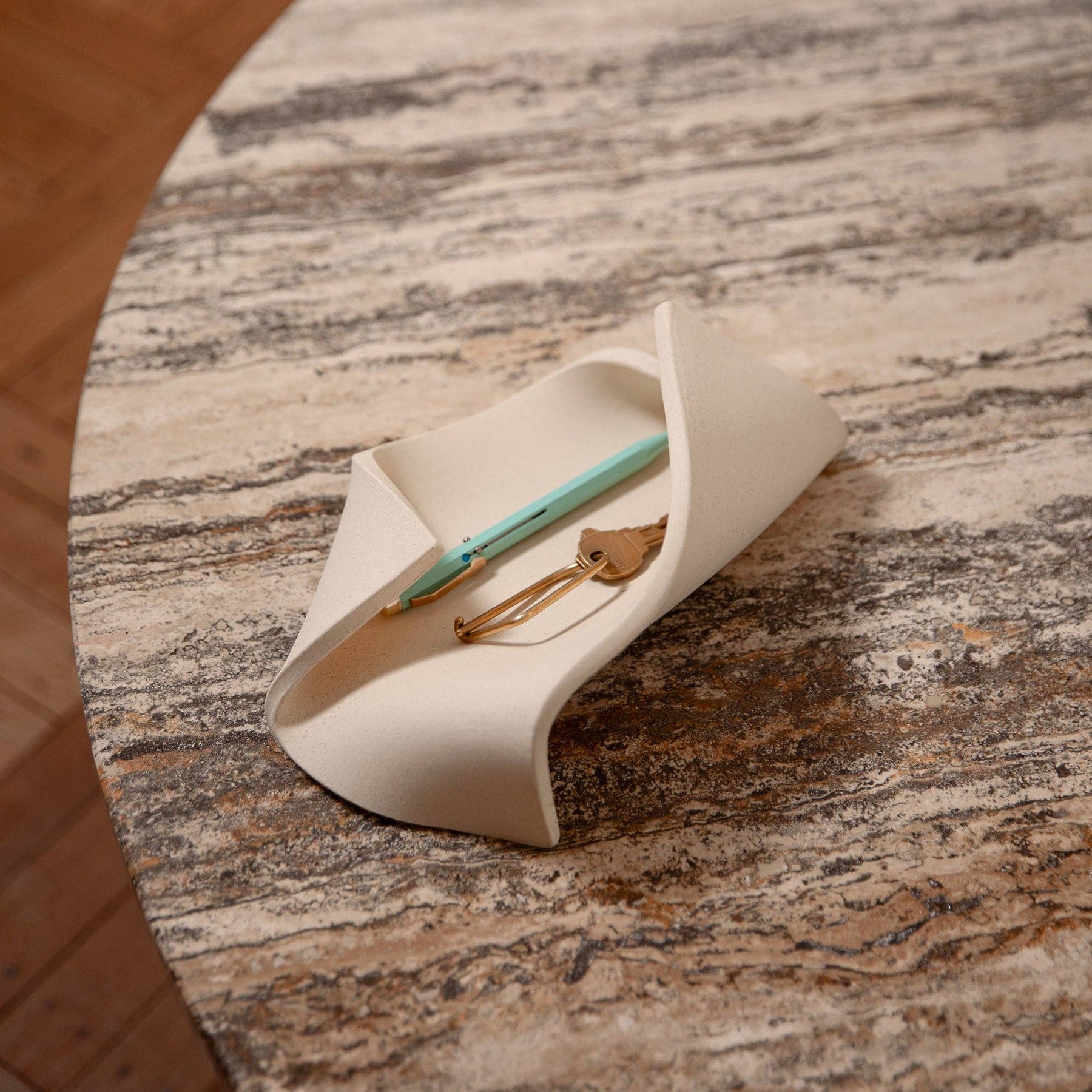 Inspired by the hidden crevices of ocean coves and the waves of Rancho Palos Verdes, Cove reimagines the traditional catch-all. Its soft curves and folded edges blend function with sculpture, offering a perfect landing spot for essentials or a standalone accent. Crafted in our signature bone finish, it’s a poetic ode to overlooked beauty.