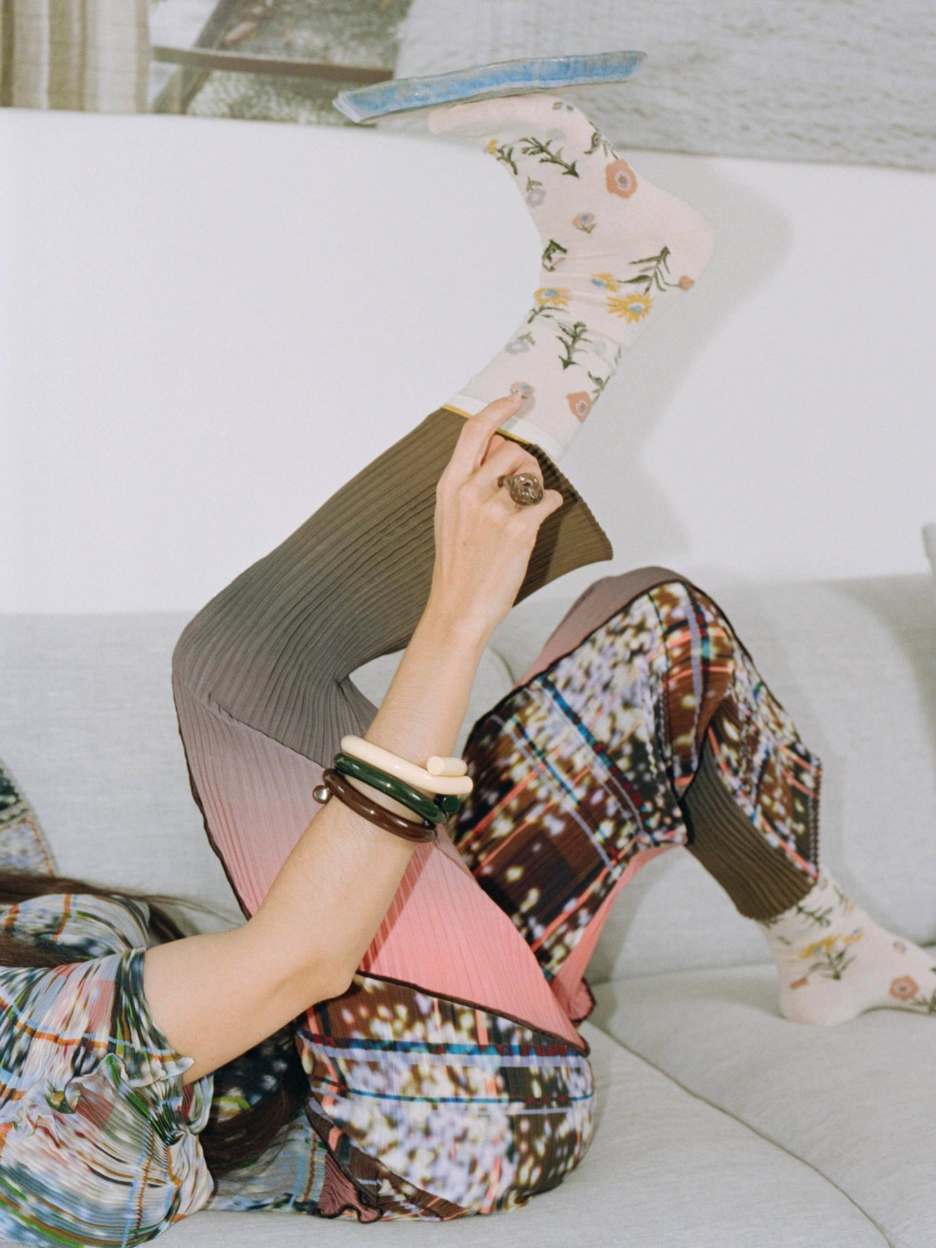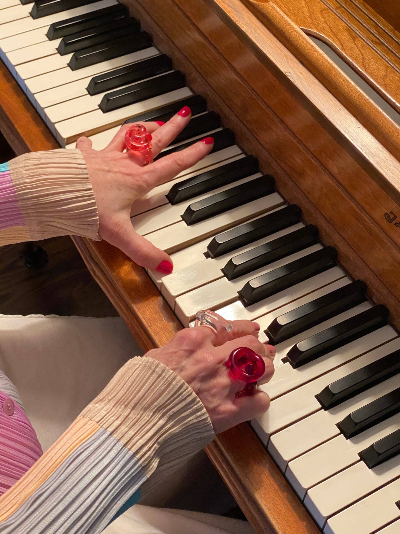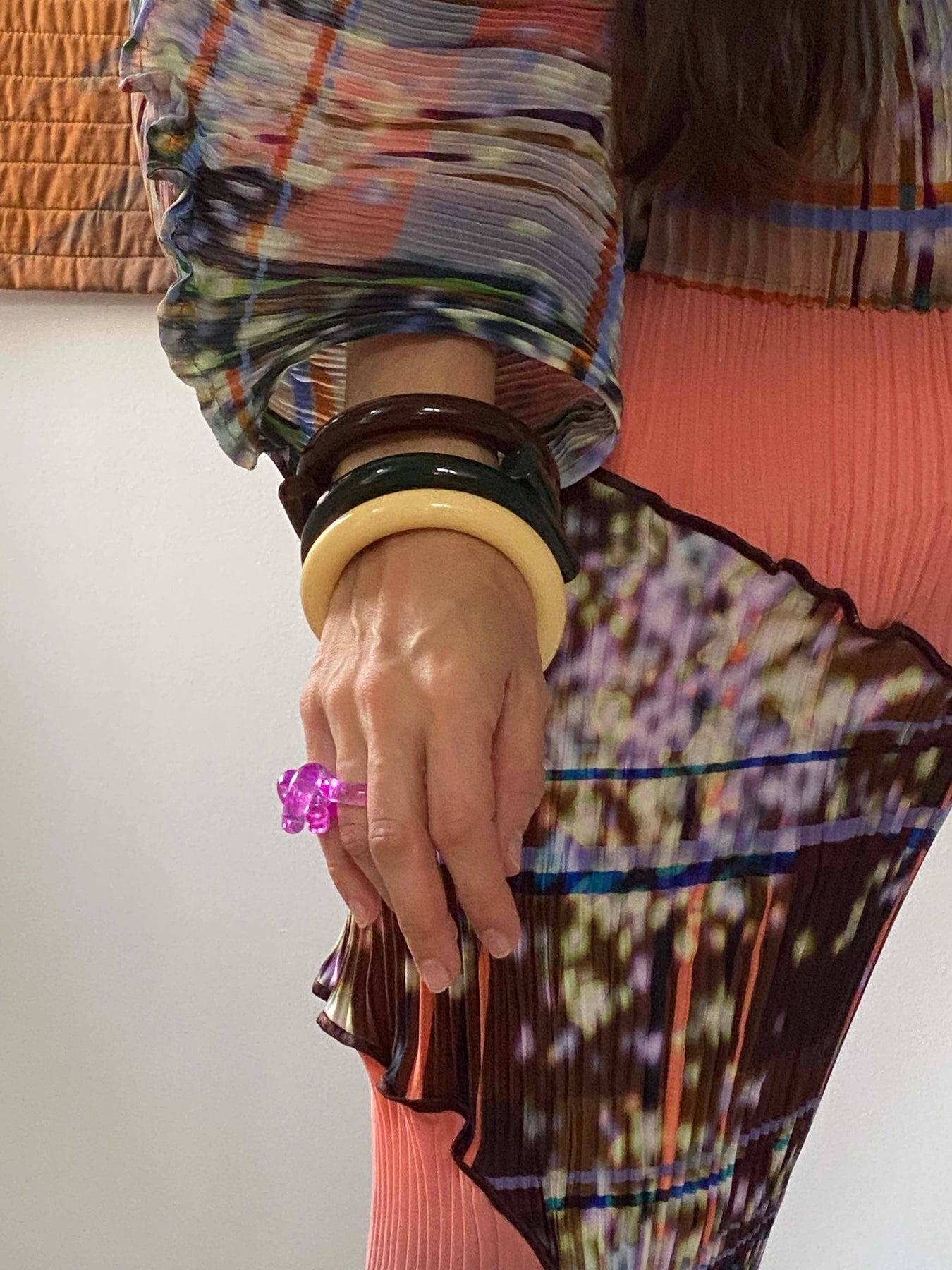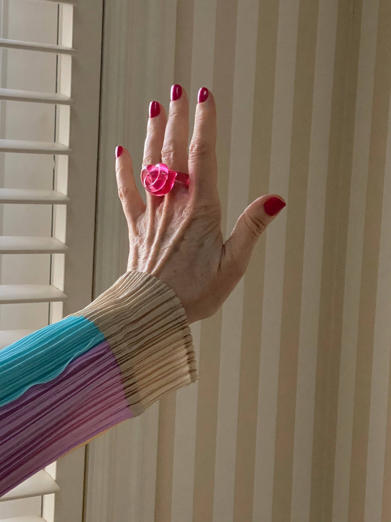 A lucite rosette swirled high on the finger like a sugary confection. Lucite does the loop-de-loop around your finger. Approximate US Ring Size: 5.5 - 6