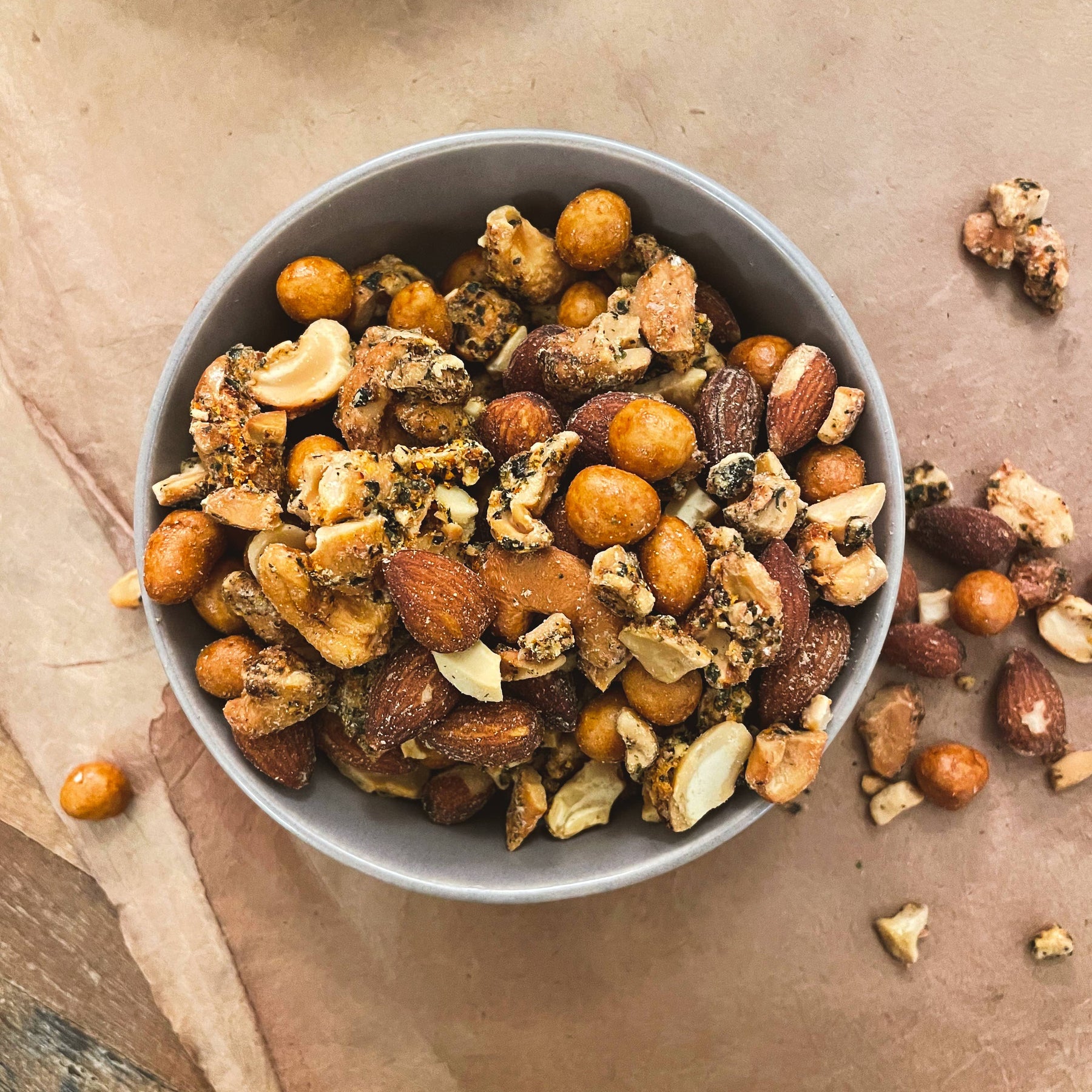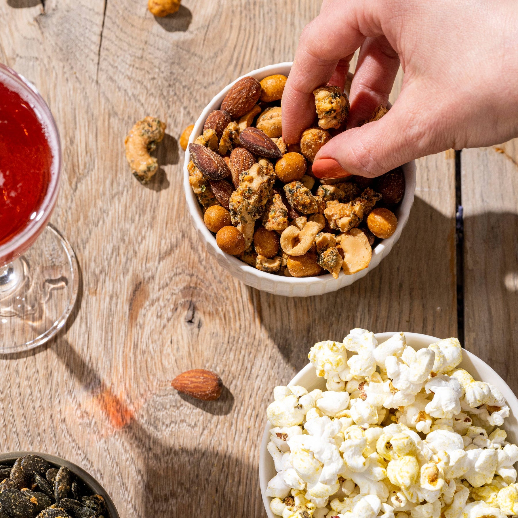 A sweet and salty combination of cashews, Japanese peanuts, and smokehouse almonds. These are a take on the nuts that we’ve served for many years at the Eleven Madison Park bar, seasoned with toasted nori and togarashi spice. Perfect for those seeking a distinctive and elegant snack. Contains Tree Nuts (Almonds & Cashews), Wheat, Soy, Sesame and Peanuts